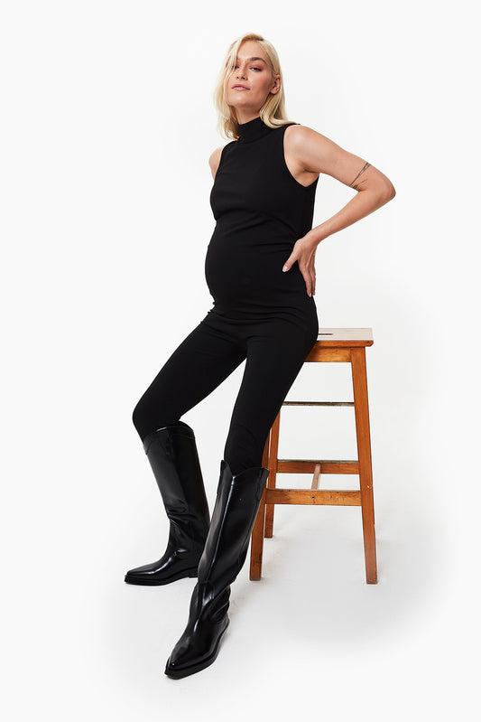Cheria Kısa Kollu Hamile Tulum Siyah